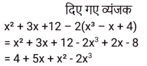 14. दिए गए व्यंजक को सरल कीजिए: x² + 3x + 12 − 2(x³ − x + 4) [Group D 28/09/2022 (Morning)]