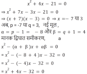 15. यदि p और q समीकरण x² + 4x − 21 = 0 के मूल हैं, और p < q है, तो x के पदों में वह द्विघात समीकरण ज्ञात कीजिए, जिसके मूल (p − 1) और (q + 1) होंगे। [Group D 28/09/2022 (Morning)]