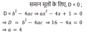 17. यदि द्विघात समीकरण ax² − 4x + 1 = 0 के मूल समान हैं, तो a का मान ज्ञात कीजिए। [Group D 28/09/2022 (Afternoon)]