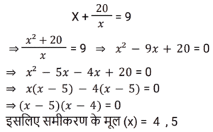 19. द्विघात समीकरण x + 20/x = 9 के मूल ज्ञात कीजिए। [Group D 28/09/2022 (Evening)]