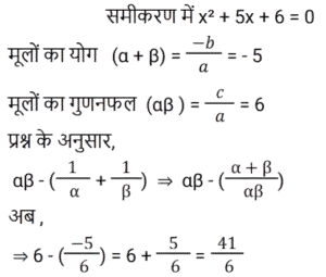 20. यदि α और β समीकरण x² + 5x + 6 = 0 के मूल हैं, तो αβ − (1/α + 1/β) का मान ज्ञात कीजिए। [Group D 28/09/2022 (Evening)]