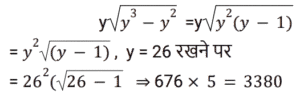 1. यदि y = 26, तो y√(y³ − y²) का मान ज्ञात कीजिए ? [RRB NTPC 11/02/2021 (Evening)]