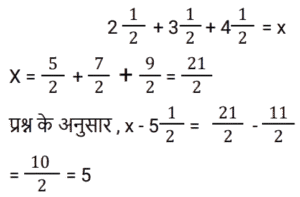 2. यदि 2½ + 3½ + 4½ = x, तो x − 5½ का मान क्या होगा? [RRB NTPC 12/02/2021 (Morning)]