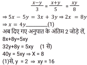 3. यदि (x − y)/3 = (x + y)/5 = xy/8 तो xy का मान ज्ञात कीजिए ? [RRB NTPC 15/02/2021 (Morning)]