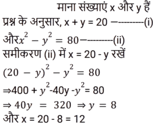 5. दो संख्याओं का योग 20 है और उनके वर्गों के बीच का अंतर 80 है। दिए गए विकल्पों में से दो संख्याओं का चयन करें? [RRB NTPC 15/02/2021 (Morning)]