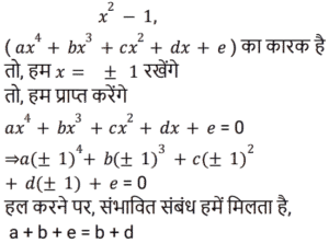 6. अगर x² − 1, ax⁴ + bx³ + cx² + dx + e का एक कारक है, तो निम्न में से कौन सा x की घात के गुणांक के बीच एक संभावित संबंध है [RRB NTPC 15/02/2021 (Evening)]