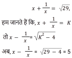 7. यदि x > 1, और x + 1/x = √29, तो x − 1/x का मान ज्ञात कीजिये ? [RRB NTPC 15/02/2021 (Evening)]