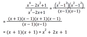 38. (𝓍⁴ - 2𝓍² + 1)/(𝓍² - 2𝓍² + 1) को सरलीकृत कीजिए । [SSC CGL 17/07/2023 (2nd shift)]
