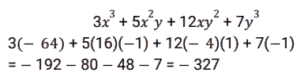 33. x = - 4 और y = - 1 होने पर (3𝓍³ + 5𝓍²y + 12𝓍y² + 7y³) का मान ज्ञात कीजिए । [SSC CGL 14/07/2023 (1st shift)]