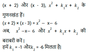 47. यदि (x + 2) और (x - 3), x² + k₁x + k₂ के गुणनखंड हैं, तो : [SSC CHSL 09/06/2022 (Afternoon)]