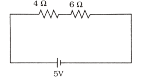 हमें एक सर्किट प्रदान किया जाता है जिसमें विद्युत घटक के रूप में प्रतिरोध और वोल्टेज जुड़ा होता है। 4Ω, 6Ω एवं 5V के वोल्टेज के साथ श्रृंखला में जुड़े हुए हैं।