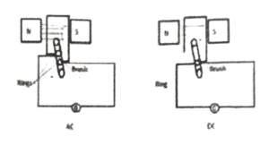 डीसी (DC) जनरेटर में स्थायी चुंबक होता है और एसी (AC) में विद्युत चुंबक होता है