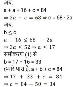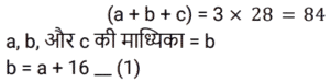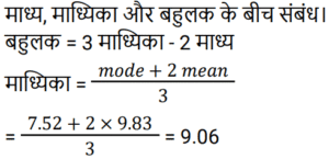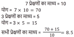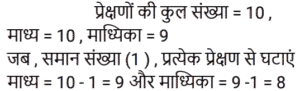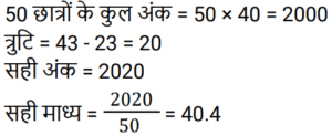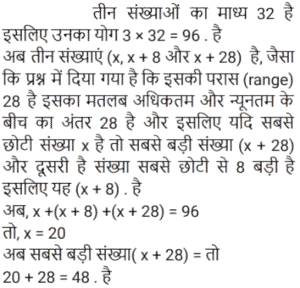 माध्य, माध्यिका और बहुलक Part-4Total Questions: 501. 7 प्रेक्षणों का माध्य और माध्यिका क्रमशः 10 और 9 है। यदि प्रत्येक प्रेक्षण में से 1 घटा दिया जाए, तो नया माध्य और नया माध्यक क्रमशः क्या होगा ? [RRB NTPC 16/02/2021 (Morning)](a) 7 और 6(b) 8 और 9(c) 9 और 8(d) 4 और 3Correct Answer: (c) 9 और 8Solution:2. मध्यम विषम वितरण में बहुलक और माध्य के मान क्रमशः 7.52 और 9.83 हैं। वितरण का माध्यिका ज्ञात कीजिए। [RRB NTPC 16/02/2021 (Evening)](a) 9.00(b) 8.86(c) 8.90(d) 9.06Correct Answer: (d) 9.06Solution:3. तीन संख्याओं का माध्य 32 है। आँकड़ों के इस समूह का परास (range) 28 है, जबकि दो सबसे छोटी संख्याओं का अंतर 8 है। तीनों संख्याओं में से सबसे बड़ी संख्या ज्ञात कीजिए। [RRB NTPC 17/02/2021 (Morning)](a) 48(b) 50(c) 51(d) 52Correct Answer: (a) 48Solution:4. तीन धनात्मक पूर्णांक a, b और c इस प्रकार हैं कि उनका औसत 28 है और a ≤ b ≤ c है। यदि माध्यिका (a + 16) है, तो c का न्यूनतम संभव मान क्या है? [RRB NTPC 17/02/2021 (Evening)](a) 34(b) 32(c) 33(d) 35Correct Answer: (a) 34Solution:5. निम्न आँकड़ों का माध्यिका और बहुलक ज्ञात कीजिए [RRB NTPC 22/02/2021 (Morning)]2, 3, 5, 7, 2, 3, 3, 5, 7, और 9(a) 4, 3(b) 3, 3(c) 4, 4(d) 3, 4Correct Answer: (a) 4, 3Solution:6. 7 अलग-अलग प्रेक्षणों के एक सेट की माध्यिका 21.5 है। यदि सेट के सबसे बड़े 3 प्रेक्षणों में से प्रत्येक में 4 की वृद्धि कर दी जाए, तो नए सेट की माध्यिका – [RRB NTPC 23/02/2021 (Morning)](a) 4 से कम हो जाएगा(b) मूल माध्यिका का चार गुना होगा(c) मूल सेट के समान ही रहेगा(d) 4 की वृद्धि होगीCorrect Answer: (c) मूल सेट के समान ही रहेगाSolution:7. 7 प्रेक्षणों के समुच्चय का माध्य 10 है और 3 प्रेक्षणों के दूसरे समुच्चय का माध्य 5 है। संयुक्त समुच्चय का माध्य क्या है? [RRB NTPC 27/02/2021 (Morning)](a) 8.5(b) 7.5(c) 15(d) 10Correct Answer: (a) 8.5Solution:8. एक मध्यम असममित वितरण में बहुलक और माध्य के मान क्रमशः 12.5 और 15.2 हैं। वितरण का माध्यक ज्ञात कीजिए? [RRB NTPC 27/02/2021 (Evening)](a) 14.0(b) 14.9(c) 14.3(d) 14.5Correct Answer: (c) 14.3Solution:9. एक मध्यम असममित वितरण में बहुलक और माध्य के मान क्रमशः 31.5 और 34.2 हैं। बंटन की माध्यिका ज्ञात कीजिए। [RRB NTPC 01/03/2021 (Evening)](a) 34.3(b) 30.3(c) 33.3(d) 33.0Correct Answer: (c) 33.3Solution:10. 50 छात्रों द्वारा प्राप्त अंकों का माध्य 40 पाया गया। बाद में यह पता चला कि 43 के अंक को 23 के रूप में गलत तरीके से पढ़ा गया था। सही माध्य क्या है? [RRB NTPC 02/03/2021 (Morning)](a) 42(b) 41.5(c) 40.4(d) 42.5Correct Answer: (c) 40.4Solution:Submit Quiz12345Next »