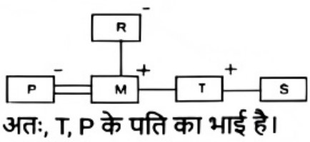 उपरोक्त के आधार पर, यदि 'P - M + R ÷ T ✕ S' है, तो T, P से किस प्रकार संबंधित है?