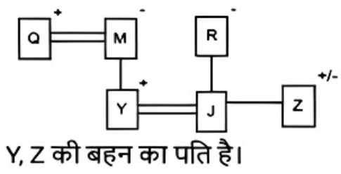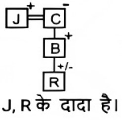 रक्त सम्बन्ध (भाग-III)Total Questions: 5021. A @ B का अर्थ है "A, B का पति है" A & B का अर्थ है "A, B की माता है" A # B का अर्थ है "A, B की पुत्री है" [SSC CPO 03/10/2023 (2nd Shift)](a) पिता(b) बुआ(c) भाभी(d) बहनोईCorrect Answer: (d) बहनोईSolution:22. A @ B का अर्थहै “A, B का पति है" “A & B का अर्थ है “A, B की माता है" A # B का अर्थ है “A, B की पुत्री है" [SSC CPO 03/10/2023 (3rd Shift)]यदि D & G @ F & E @ H है, तो G का H से क्या संबंध है?(a) पिता(b) सास(c) माता(d) ससुरCorrect Answer: (d) ससुरSolution:23. 'A ? B' का अर्थ है की 'A, B का पुत्र है’ I 'A $ B' का अर्थ है की 'A, B की पुत्री है' I 'A * B' का अर्थहैकी 'A, B का भाई है' I 'A = B' का अर्थ है की 'A, B का पिता है' I [SSC CPO 04/10/2023 (1st Shift)]यदि H $ Q * Y * N, है , Y का H से क्या संबंध है(a) दादा(b) भाई(c) चाचा/ताऊ(d) पिताCorrect Answer: (c) चाचा/ताऊSolution:24. F $ G' का अर्थ है कि 'F, G की माता है' 'F # G' का अर्थ है कि F, G का पिता है' 'F @ G' का अर्थ है कि F, G का पति है' 'F % G' का अर्थ है कि F, G की पुत्री है' [SSC CPO 04/10/2023 (2nd Shift)]यदि J @ C $ B # R है, तो J का R से क्या संबंध है ?(a) मामा(b) बुआ(c) पिता(d) दादाCorrect Answer: (d) दादाSolution:25. "P $ Q" का अर्थ है "P, Q की पुत्री है" "P ? Q" का अर्थ है "P, Q का पुत्र है" "P * Q" का अर्थ है "P, Q की बहन है" "P = Q" का अर्थ है "P, Q का पिता है" [SSC CPO 04/10/2023 (3rd Shift)]यदि 'D $ G * U ? F' है, तो G का F से क्या संबंध है?(a) बुआ(b) पुत्री(c) भाई(d) मौसीCorrect Answer: (b) पुत्रीSolution:26. "Z @ A" का अर्थ है "Z, A का पुत्र है"। "Z * A" का अर्थ है "Z, A का भाई है"। "Z × A" का अर्थ है "Z, A के पिता है"। "Z # A" का अर्थ है "Z, A की बहन है"। "Z $ A " का अर्थ है "Z, A की पुत्री है"। "Z = A" का अर्थ है "Z, A की माता है। [SSC CPO 05/10/2023 (1st Shift)]निम्नलिखित व्यंजक में A का Y से क्या संबंध है? A * S = J @ M × Y(a) A, Y के पिता है।(b) A, Y का भाई है।(c) A, Y का चचेरा/ममेरा/फुफेरा/मौसेरा भाई बहन है।(d) A, Y की माता का भाई है।Correct Answer: (d) A, Y की माता का भाई है।Solution:27. A@B का अर्थ 'A ,B का पति है’ A & B का अर्थ 'A ,B की माता है ’, A# B का अर्थ 'A, B की पुत्री है,’ [SSC CPO 05/10/2023 (2nd Shift)]यदि J # L@Y & K@Z, तो J का Z से क्या संबध है ?(a) ननद(b) भाभी(c) माता(d) बहनोईCorrect Answer: (a) ननदSolution:28. Q + J का अर्थ है "Q, J का पति है" Q – J का अर्थ है "Q, J का पिता है" Q × J का अर्थ है "Q, J की माता है" Q * J का अर्थ है "Q, J की पुत्री है" [SSC CPO 05/10/2023 (3rd Shift)](a) माता(b) बहन(c) भाई(d) पुत्रीCorrect Answer: (b) बहनSolution:29. एक निश्चित कूट भाषा में, A + B का अर्थ 'A, B का पिता है', A – B का अर्थ 'A, B की पत्नी है' A × B का अर्थ 'A, B का भाई है' A ÷ B का अर्थ 'A, B की मां है' [SSC CHSL 02/08/2023 (1st Shift)]उपरोक्त के आधार पर, यद 'G ÷ H × I − J + K " है, तो G का K से क्या संबंध है?(a) मां की मां(b) पिता की बहन(c) मां(d) पिता की मांCorrect Answer: (a) मां की मांSolution:30. V, P की माँ है। P, K का भाई है। K के भाई N की केवल एक संतान T है। K, H की इकलौती पोती है। K का T से क्या संबंध है? [SSC CHSL 02/08/2023 (3rd Shift)](a) पिता की माँ(b) माँ(c) बहन(d) पिता की बहनCorrect Answer: (d) पिता की बहनSolution:Submit Quiz« Previous12345Next »