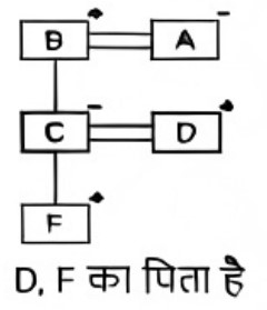 रक्त सम्बन्ध (भाग-IV)Total Questions: 501. एक निश्चित कूट भाषा में, ‘A + B’ का अर्थ 'A, B का पति है' ‘A – B ‘का अर्थ 'A, B की मां है' ‘A × B’ का अर्थ 'A, B की बहन है', ‘A ÷ B’ का अर्थ 'A, B का भाई है' [SSC CHSL 14/08/2023 (4th Shift)]उपरोक्त के आधार पर, यदि 'S × T + U - V ÷ W’ ? है, तो S का W से क्या संबंध है?(a) पिता की बहन(b) मां की बहन(c) भाई की पत्नी(d) बहनCorrect Answer: (a) पिता की बहनSolution:2. एक निश्चित कूट भाषा में, A + B का अर्थ है 'A, B की माँ है' A - B का अर्थ है 'A, B का भाई है' A × B का अर्थ है 'A, B की पत्नी है' A ÷ B का अर्थ है 'A, B का पिता है [SSC CHSL 17/08/2023 (1st Shift)]उपरोक्त के आधार पर, यदि '𝐹 + 𝐺 × 𝐻 ÷ 𝐼 − 𝐽' है तो F का J से क्या संबंध है?(a) माँ की माँ(b) बेटी(c) पत्नी के पिता(d) माँ के पतिCorrect Answer: (a) माँ की माँSolution:3. K का विवाह L से हुआ है M, L का बेटा है। N, M का भाई है। O, M की बेटी है और P से विवाहित है। Q, M की मां की मां है, और उसकी केवल एक बेटी L है। R का विवाह Q से हुआ है। R का K से क्या संबंध है? [SSC CHSL 17/08/2023 (3rd Shift)](a) पिता(b) पत्नी के पिता(c) पत्नी की मां(d) मां के भाईCorrect Answer: (b) पत्नी के पिताSolution:4. सुरेशा की ओर इशारा करते हुए मैंने कहा, "यह मेरी पत्नी के बेटे के भाई की बेटी है।" मेरा सुरेशा से क्या संबंध है? [SSC CGL 14/07/2023 (2nd shift)](a) दादी(b) ग्रैंड ऑन्ट(c) दादा(d) ग्रैंड अंकलCorrect Answer: (c) दादाSolution:5. यदि, 'C @ S' का अर्थ है 'C, S का पिता है', 'C * S' का अर्थ है 'C, S का भाई है', 'C # S' का अर्थ है 'C, S की बहन है', 'C $ S' का अर्थ है 'C, S की बेटी है', 'C = S' का अर्थ है 'C, S की मां है', [SSC CGL 14/07/2023 (3rd shift)]तो दिए गए व्यंजक में Z का Q से क्या संबंध है ? Q $ R @ S * T $ Z(a) भाभी(b) माँ(c) बहन(d) पुत्रीCorrect Answer: (b) माँSolution:6. 'P @ Q' का अर्थ है 'P, Q की पत्नी है'। 'P # Q' का अर्थ है 'P, Q का भाई है'। 'P $ Q' का अर्थ है 'P, Q का पिता है'। 'P – Q' का अर्थ है 'P, Q की पुत्री है'। [SSC CGL 14/07/2023 (4th shift)]यदि Z – B $ D $ G है, तो Z, G से किस प्रकार संबंधित है ?(a) Z, G की माता है(b) Z, G की बहन है(c) Z, G की बुआ है(d) Z, G की पुत्री हैCorrect Answer: (c) Z, G की बुआ हैSolution:Z, G की बुआ है।7. F, C का पुत्र है। C, B की इकलौती पुत्री है। D, A का इकलौता दामाद है। B, C का पिता है। A, B की पत्नी हैI D, F से किस प्रकार संबंधित है ? [SSC CGL 18/07/2023 (2nd shift)](a) साला(b) पिता(c) ससुर(d) भाईCorrect Answer: (b) पिताSolution:8. एक लड़की की तस्वीर को देखकर वेरोनिका ने कहा, "वह मेरे पति के भाई की बेटी की माँ है।" तस्वीर में दिख रही लड़की से वेरोनिका किस प्रकार संबंधित है? [SSC CGL 18/07/2023 (3rd shift)](a) मौसी(b) देवरानी / जेठानी(c) चचेरी बहन(d) माताCorrect Answer: (b) देवरानी / जेठानीSolution:9. प्रिया ने एक व्यक्ति की ओर इशारा करते हुए कहा कि वह उसके भाई की दादी की इकलौती संतान है। वह व्यक्ति प्रिया से किस प्रकार संबंधित है ? [SSC CGL 18/07/2023 (4th shift)](a) भाई(b) दादा(c) पिता(d) पुत्रCorrect Answer: (c) पिताSolution:10. A + B' का अर्थ है 'A, B की बहन है। 'A - B' का अर्थ है 'A, B की पत्नी है। 'A × B' का अर्थ है 'A, B का भाई है'। 'A ÷ B' का अर्थ है 'A, B का पिता है'। [SSC CGL 19/07/2023 (2nd shift)]यदि L + M + N - O ÷ P × Q है, तो निम्नलिखित में से कौन-सा कथन सही नहीं है?(a) O , Q का पिता है।(b) L, N की पुत्री है।(c) P, N का पुत्र है।(d) M, O की पत्नी की बहन है।Correct Answ