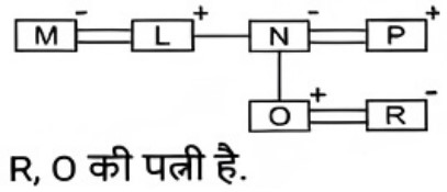 रक्त सम्बन्ध (भाग-IV)Total Questions: 5021. परिवार के चित्र को देखते हुए स्नेहा ने कहा, "वह मेरे भाई की पत्नी के पुत्र के पिता की सास की इकलौती पुत्री है। फोटो वाली लड़की स्नेहा से किस प्रकार संबंधित है ? [SSC CGL 27/07/2023 (1st shift)](a) पुत्रवधू(b) भाभी(c) माता(d) बहनCorrect Answer: (b) भाभीSolution:22. एक आदमी की ओर इशारा करते हुए रॉकी (एक पुरुष) ने कहा "वह मेरी बहू की बेटी का पिता है।" रॉकी उस आदमी से किस प्रकार संबंधित है ? [SSC CGL 27/07/2023 (2nd shift)](a) चाचा/ताऊ/मामा/मौसा(b) पुत्र(c) पिता(d) सालाCorrect Answer: (c) पिताSolution:23. 'Q + R' का अर्थ है कि 'Q, R का पिता है' 'Q − R' का अर्थ है कि 'Q, R की पत्नी है ' 'Q × R' का अर्थ है कि 'Q, R का भाई है' 'Q ÷ R' का अर्थ है कि 'Q, R की पुत्री है' यदि 'S ÷ Q + M × P - K', है, तो Q का K से क्या रिश्ता है ? [Graduate Level 27/06/2023 (Shift - 4)]यदि 'S ÷ Q + M × P - K', है, तो Q का K से क्या रिश्ता है?(a) ससुर(b) दामाद(c) पुत्र(d) पिताCorrect Answer: (a) ससुरSolution:24. तस्वीर में दिख रहे एक व्यक्ति की ओर इंगित करते हुए सनी नाम के एक लड़के ने कहा "वह मेरी बहन की माता के पति का भाई है"। तस्वीर वाले व्यक्ति के साथ सनी का क्या संबंध है ? [Graduate Level 28/06/2023 (Shift - 3)](a) दादा(b) भतीजा(c) भाई(d) पुत्रCorrect Answer: (b) भतीजाSolution:25. ‘Z + Q' का अर्थ है कि 'Z, Q का भाई है', 'Z × Q' का अर्थ है कि 'Z, Q का पिता है', 'Z ÷ Q' का अर्थहैकि 'Z, Q की माता है। निम्न में से किस विकल्प का अर्थ है कि 'A, B का पुत्र है' ? [Graduate Level 30/06/2023 (Shift - 1)](a) B × I × A(b) B + A × I(c) B ÷ A ÷ I(d) B × A + ICorrect Answer: (d) B × A + ISolution:26. एक आदमी की तस्वीर की ओर इंगित करते हुए मुस्कान नाम की एक महिला ने कहा "वह मेरे पिता के दादा का इकलौता पोता है" । तस्वीर वाले व्यक्ति के साथ मुस्कान का क्या संबंध है ? [Graduate Level 30/06/2023 (Shift - 1)](a) भाभी(b) बेटी(c) माँ(d) बहनCorrect Answer: (b) बेटीSolution:27. B + D' का अर्थ है 'B, D का ससुर है। 'B & D' का अर्थ है 'B, D का भाई है। 'B # D' का अर्थ है 'B, D की पत्नी है। 'B $ D' का अर्थ है 'B, D का पुत्र है'। 'B @ D' का अर्थ है 'B, D की माता है। [Higher Secondary 27/06/2023 (Shift - 3)]यदि O अपने माता - पिता की इकलौती संतान है, तो निम्नलिखित में से कौन-सा विकल्प दिए गए व्यंजक के संदर्भ में सही है ? M # L & N @ O $ P + R(a) R, O की पत्नी है।(b) L और P सहोदर हैं।(c) N का केवल एक पुत्र और एक पुत्री है।(d) N, R की माता है।Correct Answer: (a) R, O की पत्नी है।Solution:28. यदि, 'B % D' का अर्थ है 'B, D की बहन है', 'B & D' का अर्थ है 'B, D का पिता है', 'B × D' का अर्थ है 'B, D का पति है', 'B # D' का अर्थ है 'B, D का भाई है', 'B $ D' का अर्थ है 'B, D की पत्नी है', 'B @ D' का अर्थ है 'B, D की सास है' [Higher Secondary 28/06/2023 (Shift - 2)]तो दिए गए व्यंजक में A का K से क्या संबंध है? A × B @ C $ D # E & K(a) चाचा(b) भाई / बहन(c) दादा(d) भाईCorrect Answer: (c) दादाSolution:29. 'M + O' का अर्थ है कि 'M, O के पिता है' ‘M – O’ का अर्थ है कि 'M, O की माता है ' ‘M × O’ का अर्थ है कि 'M, O का भाई है' ‘M ÷ O’ अर्थ है कि 'M, O की बहन है' 'W + T + S' का क्या अर्थ है ? [Higher Secondary 28/06/2023 (Shift - 2)](a) W, S का पिता है(b) W, S की बहन है(c) W, S के पिता के पिता (दादा) है(d) W, S का भाई हैCorrect Answer: (c) W, S के पिता के पिता (दादा) हैSolution:30. ‘A + B' का अर्थ है 'A, B का पुत्र है। 'A - B' का अर्थ है 'A, B की माता है। 'A × B' का अर्थ है 'A, B