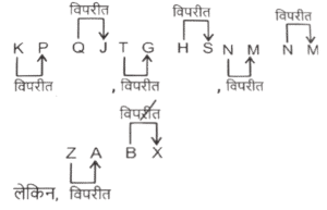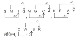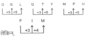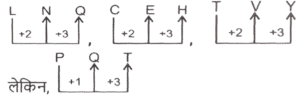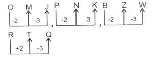 वर्गीकरण (भाग-III)Total Questions: 5031. भिन्न अक्षर-समूह का चयन कीजिये ? [SSC CHSL 04/07/2024 (4th Shift)](a) SMIG(b) MGCA(c) CWSR(d) KEAYCorrect Answer: (c) CWSRSolution:32. भिन्न अक्षर-समूह का चयन कीजिये ? [SSC CHSL 05/07/2024 (1st Shift)](a) DGL(b) FIM(c) QTY(d) MPUCorrect Answer: (b) FIMSolution:33. भिन्न अक्षर-समूह का चयन कीजिये ? [SSC CHSL 05/07/2024 (2nd Shift)](a) OMJ(b) PNK(c) BZW(d) RTQCorrect Answer: (d) RTQSolution:34. भिन्न अक्षर-समूह का चयन कीजिये ? [SSC CHSL 05/07/2024 (3rd Shift)](a) DGJ(b) HKN(c) PSU(d) TWZCorrect Answer: (c) PSUSolution:35. भिन्न अक्षर-समूह का चयन कीजिये ? [SSC CHSL 08/07/2024 (1st Shift)](a) LNQ(b) СЕН(c) TVY(d) PQTCorrect Answer: (d) PQTSolution:36. भिन्न अक्षर-समूह का चयन कीजिये ? [SSC CHSL 08/07/2024 (2nd Shift)](a) FUHS(b) MNOL(c) AZCX(d) YCAZCorrect Answer: (d) YCAZSolution:37. भिन्न अक्षर-समूह का चयन कीजिये ? [SSC CHSL 08/07/2024 (4th Shift)](a) KPQJ(b) TGHS(c) NMNM(d) ZABXCorrect Answer: (d) ZABXSolution:38. भिन्न अक्षर-समूह का चयन कीजिये ? [SSC CHSL 09/07/2024 (1st Shift)](a) LIK(b) EBD(c) PMO(d) ROSCorrect Answer: (d) ROSSolution:39. भिन्न अक्षर-समूह का चयन कीजिये ? [SSC CHSL 09/07/2024 (2nd Shift)](a) DGK(b) ILO(c) NQU(d) JMQCorrect Answer: (b) ILOSolution:40. इस प्रश्न में शब्द-युग्म है जिनका एक दूसरे से एक निश्चित संबंध है। उस युग्म का चयन कीजिए जिसमें समान संबंध नहीं है। [SSC CHSL 09/07/2024 (3rd Shift)]चतुर : बुद्धिमान 1) उत्तरदायी : जवाबदेह 2) विनम्र नम्र 3) फुर्तीला : सुस्त 4) प्रकोप : विस्फोट(a) 1(b) 4(c) 2(d) 3Correct Answer: (d) 3Solution:जिस प्रकार चतुर : बुद्धिमान का अर्थ एक ही है, उसी प्रकार फुर्तीला : सुस्त को छोड़कर तीनों विकल्पों में शब्द युग्मों का अर्थ भी एक ही है।Submit Quiz« Previous12345Next »