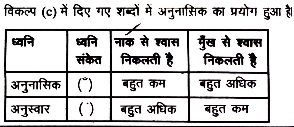 Solution:उक्त चारों विकल्पों में 'कँटीला' शब्द में 'अनुनासिक' है। अनुनासिक (*) स्वरों का उच्चारण नाक और मुँह की सहायता से होता है तथा इनके उच्चारण में लघुता रहती है। जैसे-आँगन, गाँव, माँ इत्यादि।कंगन शब्द में अनुस्वार का प्रयोग किया गया है।