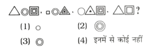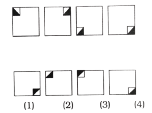 Solution:प्रत्येक अगली आकृति में छोटा चतुर्भुज दक्षिणावर्त दिशा में क्रमश: 1, 2, 3, ...... घर आगे बढ़ रहा है एवं उसके भीतर का काला भाग आकृति '2' के बाद स्थिर रह रहा है। अतः आकृति '4' की स्थिति से चार घर दक्षिणावर्त घूमने के बाद छोटा चतुर्भुज पूर्व स्थिति में ही रहेगा, जिससे उत्तर आकृति विकल्प '4' प्राप्त होगी।