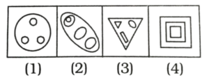 विविध : वर्गीकरण (1-50 प्रश्न)Total Questions: 5031. निम्नलिखित चार में से तीन किसी-न-किसी प्रकार एक समान हैं। साथ ही एक समूह भी बनाते हैं। एक जो उस समूह से भिन्न है उसे ज्ञात कीजिये। [आरआरबी राँची सहायक स्टेशन मास्टर/गुड्स गार्ड परीक्षा 08.08.2004](1)(2)(3)(4)Correct Answer: (4)Solution:आकृति (4) को छोड़कर शेष सभी में चित्रों की संख्या चार है, जबकि आकृति (4) में चित्रों की संख्या तीन है।32. निम्नलिखित प्रत्येक प्रश्न में कई आकृतियाँ दी | गई हैं। इनमें से एक के अतिरिक्त अन्य सभी किसी प्रकार से समानधर्मी हैं, परंतु एक भिन्न है, उसे ज्ञात कीजिये। [आरआरबी अहमदाबाद सहायक स्टेशन मास्टर परीक्षा 29.08.2004](1)(2)(3)(4)Correct Answer: (1)Solution:33. निम्नलिखित प्रत्येक प्रश्न में कई आकृतियाँ दी | गई हैं। इनमें से एक के अतिरिक्त अन्य सभी किसी प्रकार से समानधर्मी हैं, परंतु एक भिन्न है, उसे ज्ञात कीजिये। [आरआरबी अहमदाबाद सहायक स्टेशन मास्टर परीक्षा 29.08.2004](1)(2)(3)(4)Correct Answer: (4)Solution:34. निम्नलिखित प्रत्येक प्रश्न में कई आकृतियाँ दी | गई हैं। इनमें से एक के अतिरिक्त अन्य सभी किसी प्रकार से समानधर्मी हैं, परंतु एक भिन्न है, उसे ज्ञात कीजिये। [आरआरबी अहमदाबाद सहायक स्टेशन मास्टर परीक्षा 29.08.2004](1)(2)(3)(4)Correct Answer: (4)Solution:35. बेमेल छांटिये- [आरआरबी जम्मू तवी टिकट कलेक्टर परीक्षा 18.09.2005] (1)(2)(3)(4)Correct Answer: (4)Solution:36. निम्नलिखित प्रत्येक प्रश्न में कई आकृतियाँ दी गई है। इनमें से एक के अतिरिक्त अन्य सभी किसी प्रकार से समानधर्मी है, परंतु एक भिन्न है, उसे ज्ञात कीजिए। [आरआरबी महेन्दूघाट, पटना सीसी/ईसीआरसी/सीनियर क्लर्क परीक्षा 08.01.2006c](1)(2)(3)(4)Correct Answer: (4)Solution:37. निम्नलिखित प्रत्येक प्रश्न में कई आकृतियाँ दी गई है। इनमें से एक के अतिरिक्त अन्य सभी किसी प्रकार से समानधर्मी है, परंतु एक भिन्न है, उसे ज्ञात कीजिए। [आरआरबी महेन्दूघाट, पटना सीसी/ईसीआरसी/सीनियर क्लर्क परीक्षा 08.01.2006](1)(2)(3)(4)Correct Answer: (3)Solution:38. बेमेल चित्र को ज्ञात करें : [आरआरबी कोलकाता गुड्स गार्ड परीक्षा 02.07.2006](1)(2)(3)(4)Correct Answer: (3)Solution:39. असंबद्ध को छाँटिए — [आरआरबी कोलकाता जूनियर क्लर्क परीक्षा 07.01.2007](1) a(2) b(3) с(4) dCorrect Answer: (2) bSolution:अन्य सभी का दर्पण प्रतिबिंब बनाने से वर्णसमूह का सही रूप बनेगा।40. नीचे प्रत्येक प्रश्न में दी गयी पाँच आकृतियों में से चार किसी-न-किसी प्रकार से एक समान हैं और इस प्रकार अपना एक समूह बनाते हैं, जबकि कोई एक आकृति अन्य सभी से भिन्न है। आपको ज्ञात करना है कि प्रत्येक प्रश्न में पाँच में से कौन-सी एक आकृति भिन्न है। [आरआरबी चंडीगढ़ सहायक स्टेशन मास्टर (ASM) परीक्षा 13.05.2012](1)(2)(3)(4)(5)Correct Answer: (5)Solution:Submit Quiz« Previous12345Next »
