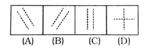 Solution:प्रश्न में दी गई आकृतियों में से आकृति D विषम है। अन्य तीनों आकृतियों में दोनों रेखाएँ आपस में समकोण पर काटती है।