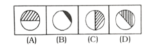 Solution:प्रश्न में दी गई आकृतियों में आकृति B विषम है। आकृति B के अतिरिक्त अन्य प्रत्येक आकृति में आधा भाग छायांकित है,