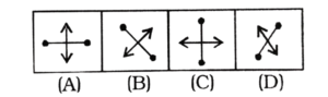 Solution:प्रश्न में दी गई आकृति विकल्प B अन्य तीनों से भिन्न है आकृति B में तीर वामावर्त (Anti clockwise) दिशा में घूर्णन कर रहा है।