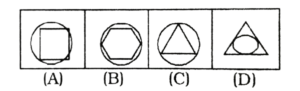Solution:प्रश्न में दी गई आकृतियों में से आकृति (D) को छोड़कर अन्य सभी परिवृत के उदाहरण है, जबकि विकल्प D अन्तः वृत का उदाहरण है।