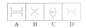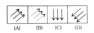 विविध : वर्गीकरण (201-250 प्रश्न)Total Questions: 5041. निम्नलिखित बार आकृतियों में से तीन आकृतियां किसी विशिष्ट प्रकार से एक समान है जबकि चौथी भिन्न है। विषम की पहचान करें। [RRB Group 'D' CBT परीक्षा, 24.10.2018 तृतीय पाली](1) C(2) B(3) D(4) ACorrect Answer: (2) BSolution:सभी तीर के डंडे लकीर (रेखा) हैं जबकी 'B' में 'dot-line' है।42. विषम की पहचान कीजिए: [RRB Group 'D' CBT परीक्षा, 24.10.2018 तृतीय पाली](1) A(2) D(3) B(4) CCorrect Answer: (4) CSolution:आकृति 'C' को छोड़कर अन्य सभी आकृति में चेहरा एक समान है।43. विषम की पहचान कीजिए: [RRB Group 'D' CBT परीक्षा, 24.10.2018 तृतीय पाली](1) A(2) B(3) C(4) DCorrect Answer: (4) DSolution:'PH' एक रासायनिक मान होता है जबकि अन्य सभी गणितीय चिन्ह है।44. विषम की पहचान करें: [RRB Group 'D' CBT परीक्षा, 24.10.2018 तृतीय पाली](1)(2)(3)(4)Correct Answer: (1)Solution:विकल्प (1) में एक बिन्दु है जबकी अन्य में तीर है।45. विषम की पहचान कीजिए: [RRB Group 'D' CBT परीक्षा, 24.10.2018 तृतीय पाली](1) A(2) C(3) B(4) DCorrect Answer: (2) CSolution:प्रत्येक आकृति के खुले मुंह के सापेक्ष बायें भुजा पर तीर है जबकि आकृति 'C' में दायें भुजा पर तीर है।46. नीचे के चित्रों में से उस चित्र को पहचानें जो शेष से अलग हैं? [RRB Group 'D' CBT परीक्षा, 25.10.2018 द्वितीय पाली](1) A(2) D(3) B(4) CCorrect Answer: (2) DSolution:आकृति 'D' को छोड़कर प्रत्येक आकृति में भुजा के बराबर छोटे वृत्त है।47. इनमें असमान का पता लगाएँ: [RRB Group 'D' CBT परीक्षा, 25.10.2018 द्वितीय पाली](1) B(2) C(3) D(4) ACorrect Answer: (2) CSolution:आकृति 'C' को छोड़कर अन्य सभी एक प्रकार का समूह बनाते हैं।48. विषम की पहचान करें : [RRB Group 'D' CBT परीक्षा, 30.10.2018 तृतीय पाली](1) B(2) A(3) C(4) DCorrect Answer: (1) BSolution:विकल्प में ऊपर अंग्रेजी का वर्ण तथा नीचे अंक है जबकि अन्य विकल्पों में इसका उल्टा है।49. वह कौन सा चित्र है, जो समूह के साथ सम्बन्धित नहीं है? [RRB Group 'D' CBT परीक्षा, 30.10.2018 तृतीय पाली](1) B(2) D(3) A(4) CCorrect Answer: (3) ASolution:चित्र 'A' के एक गोला में कुछ आकृति बना हुआ है अतः यह समूह के साथ सम्बन्धित नहीं है।50. कौन-सा चित्र, समूह के साथ सम्बंधित नहीं है? [RRB Group 'D' CBT परीक्षा, 01.11.2018 प्रथम पाली](1) D(2) A(3) C(4) BCorrect Answer: (4) BSolution:चित्र 'B' को छोड़कर अन्य आकृतियों में चित्रों की संख्या बराबर है।Submit Quiz« Previous12345