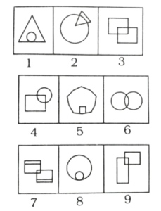 विविध : वर्गीकरण (251-300 प्रश्न)Total Questions: 501. निम्न पाँचों अक्षरों को क्रमशः (a), (b), (c), (d) और (e) से चिह्नित किया गया है, जिनमें से चार में किसी प्रकार की समानता है। जबकि एक अक्षर अन्य चारों से भिन्न है। भिन्न अक्षर का चयन करें: [RRB Group 'D' CBT परीक्षा, 02.11.2018 प्रथम पाली](1) a(2) с(3) e(4) bCorrect Answer: (3) eSolution:'A' Vowel है जबकि अन्य Consonant है।2. दी गई आकृतियों में अन्यों से भिन्न आकृति का चयन करें। [RRB Group 'D' CBT परीक्षा, 02.11.2018 प्रथम पाली](1) C(2) B(3) D(4) ACorrect Answer: (1) CSolution:आकृति 'C' को छोड़कर अन्य दो बराबर भाग में विभाजित है।3. उपरोक्त समूह में समान आकृतियों को दर्शाने वाले विकल्प का चयन करें। [RRB Group 'D' CBT परीक्षा, 02.11.2018 प्रथम पाली](1) 1, 8, 5; 7, 6, 3; 4, 2, 9(2) 1, 2, 8; 5, 6, 4; 3, 7, 9(3) 1, 8, 5; 5, 6, 3; 4, 7, 9(4) 1, 2, 5; 8, 6, 4; 2, 7, 9Correct Answer: (1) 1, 8, 5; 7, 6, 3; 4, 2, 9Solution:1, 8, 5; 7, 6, 3; 4, 2, 94. दी गई आकृतियों में से विषम को चुनें। [RRB Group 'D' CBT परीक्षा, 02.11.2018 द्वितीय पाली](1) d(2) b(3) c(4) aCorrect Answer: (1) dSolution:आकृति 'D' को छोड़कर प्रत्येक आकृति में शून्य शीर्षाभिमुख कोण पर स्थित है।5. दी गई आकृतियों में से भिन्न आकृति का चयन करें। [RRB Group 'D' CBT परीक्षा, 02.11.2018 द्वितीय पाली](1) D(2) C(3) B(4) ACorrect Answer: (1) DSolution:आकृति 'D' को छोड़कर अन्य सभी आकृति में उसके छोटे चित्र को छायांकित किया गया है।6. उस आकृति का चयन करें, जो अन्य सभी से भिन्न है। [RRB Group 'D' CBT परीक्षा, 02.11.2018 तृतीय पाली](1) E(2) C(3) A(4) BCorrect Answer: (1) ESolution:दिए गए सभी वर्णों में 'U' स्वर वर्ण है जबकि अन्य व्यंजन वर्ण है।7. नीचे दी गयी आकृतियों में से तीन किसी तरह समान हैं। जबकि इनमें से एक आकृति अन्य तीन के समान नहीं है। उस आकृति का चयन करें, जो अन्य से भिन्न है। [RRB Group 'D' CBT परीक्षा, 02.11.2018 तृतीय पाली](1) D(2) B(3) A(4) CCorrect Answer: (1) DSolution:आकृति 'D' के अंदर एक बिन्दु होने से ये अन्य आकृति से भिन्न है।8. दी गई आकृतियों में भिन्न आकृति का चयन करें। [RRB Group 'D' CBT परीक्षा, 12.11.2018 प्रथम पाली](1) C(2) A(3) B(4) DCorrect Answer: (1) CSolution:आकृति 'C' को छोड़कर अन्य सभी आकृति का आधा भाग छायांकित है।9. दी गई आकृतियों में से अन्यों से भिन्न आकृति का चयन करें। [RRB Group 'D' CBT परीक्षा, 12.11.2018 प्रथम पाली](1) B(2) D(3) C(4) ACorrect Answer: (2) DSolution:दिए गए सभी वर्णों में आकृति 'D' स्वर वर्ण है। अतः यह सबसे भिन्न है।10. निम्न विकल्पों में से विषम चित्र चुनें। [RRB Group 'D' CBT परीक्षा, 12.11.2018 प्रथम पाली](1)(2)(3)(4)Correct Answer: (3)Solution:विकल्प 3 में दिए गए आकृति में दो रंगे हुए बिन्दु एक ही वर्ग में स्थित है जबकि अन्य में दोनों वर्गों में स्थित है।Submit Quiz12345Next »