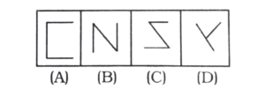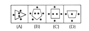 विविध : वर्गीकरण (301-350 प्रश्न)Total Questions: 5011. विषम आकृति ज्ञात करें। [RRB Group 'D' CBT परीक्षा, 17.12.2018 द्वितीय पाली](1) C(2) D(3) A(4) BCorrect Answer: (2) DSolution:विकल्प में वर्णित आकृति 'D' में दो भुजाएँ हैं जबकि शेष अन्य आकृतियों में 3 भुजाएँ हैं।12. निम्नलिखित श्रृंखला में से विषम वर्ण का चयन करें। [RRB ALP एवं Technician परीक्षा, 10.08.2018 प्रथम पाली](1) $(2) ¥(3) €(4) ACorrect Answer: (4) ASolution:'A' अंग्रेजी वर्णमाला का पहला अक्षर है जबकि अन्य मुद्रा का चिह्न है।13. दिए गए समूह से विषम आकृति चुनिए- [RRB ALP एवं Technician परीक्षा, 10.08.2018 तृतीय पाली](1) B(2) C(3) D(4) ACorrect Answer: (4) ASolution:दिए गए समूह में विषम आकृति छायांकित करने की दृष्टि से A है।14. उस चित्र का चयन करें जो समूह से संबंधित नहीं है। [RRB ALP एवं Technician परीक्षा, 13.08.2018 प्रथम पाली](1) 4(2) 1(3) 3(4) 2Correct Answer: (1) 4Solution:आकृति '4' में 4 रेखा खण्ड का प्रयोग हुआ है जबकि अन्य सभी में तीन रेखा खण्ड का प्रयोग हुआ है।अतः आकृति '4' समूह से संबंधित नहीं है।15. उस चित्र का चयन करें जो नीचे दिए गए समूह से संबंधित नहीं है। [RRB ALP एवं Technician परीक्षा, 13.08.2018 प्रथम पाली](1) A(2) B(3) C(4) DCorrect Answer: (4) DSolution:आकृति '4' को छोड़कर अन्य सभी आकृति के बाहर भुजाओं के बराबर बिन्दुओं की संख्या है।16. उस चित्र का चयन करें, जो निम्न समूह में भिन्न है। [RRB ALP एवं Technician परीक्षा, 13.08.2018 प्रथम पाली](1) D(2) C(3) A(4) BCorrect Answer: (2) CSolution:चित्र '3' को छोड़कर अन्य सभी चित्र में समांतर रेखा है।17. उस चित्र का चयन करें जो निम्नलिखित समूह से संबंधित नहीं है। [RRB ALP एवं Technician परीक्षा, 13.08.2018 तृतीय पाली](1) C(2) D(3) A(4) BCorrect Answer: (1) CSolution:आकृति 'C' को छोड़कर अन्य सभी आकृति में जोड़ा के रूप में तीलियाँ है।18. उस आकृति का चयन करें जो निम्नांकित समूह से संबंधित नहीं है। [RRB ALP एवं Technician परीक्षा, 13.08.2018 तृतीय पाली](1) D(2) C(3) B(4) ACorrect Answer: (2) CSolution:आकृति 'C' को छोड़कर अन्य सभी विकर्ण रूप से एक समूह है।19. निम्न दी गई आकृतियों में से भिन्न का चयन करें। [RRB ALP एवं Technician परीक्षा, 14.08.2018 प्रथम पाली](1) 3(2) 5(3) 4(4) 2Correct Answer: (2) 5Solution:आकृति '5' को छोड़कर प्रत्येक आकृति में अर्धवृत्त है।20. निम्नलिखित क्रम में से भिन्न चित्र का चयन करें। [RRB ALP एवं Technician परीक्षा, 14.08.2018 तृतीय पाली](1) 1(2) 5(3) 4(4) 2Correct Answer: (3) 4Solution:आकृति '4' को छोड़कर अन्य सभी एक समूह बनाते है।Submit Quiz« Previous12345Next »