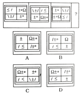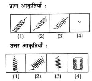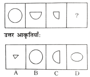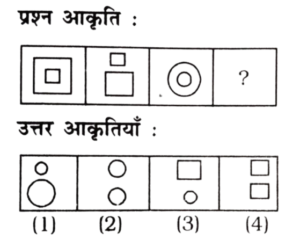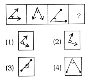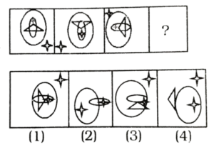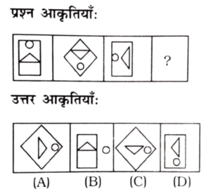 विविध : श्रृंखला (151-200 प्रश्न)Total Questions: 5041. उस विकल्प आकृति का चयन करें जो प्रश्न आकृतियों की श्रृंखला को पूरा करेगा। [RRB Group 'D' CBT परीक्षा, 11.10.2018 प्रथम पाली](1) B(2) D(3) A(4) CCorrect Answer: (3) ASolution:दिए गए प्रश्न आकृति श्रृंखला को उत्तर आकृति का विकल्प A पूर्ण करता है। अतः अभीष्ट उत्तर (3) होगा।42. निम्नलिखित श्रृंखल में प्रश्न चिह्न (?) को कौन-सा चित्र प्रतिस्थापित करेगा। [RRB Group 'D' CBT परीक्षा, 11.10.2018 प्रथम पाली](1) A(2) C(3) B(4) DCorrect Answer: (2) CSolution:दिए गए प्रश्न आकृति श्रृंखला के रिक्त स्थान को उत्तर आकृति के विकल्प c द्वारा पूर्ण किया जा सकता है।43. नीचे दी गई श्रृंखला में अगली आकृति ज्ञात कीजिए। [RRB Group 'D' CBT परीक्षा, 11.10.2018 प्रथम पाली](1) 4(2) 1(3) 3(4) 2Correct Answer: (2) 1Solution:प्रश्न में दिए गए आकृति श्रृंखला में रिक्त स्थान पर उत्तर आकृति के विकल्प A श्रृंखला को पूर्ण करेगा।44. नीचे दी गई आकृतियों में से कौन-सी उपरोक्त रिक्त स्थान (?) में सही ढंग से फिट बैठती है? [RRB Group 'D' CBT परीक्षा, 11.10.2018 प्रथम पाली](1) 1(2) 2(3) 4(4) 3Correct Answer: (2) 2Solution:प्रश्न में दिए गए आकृति श्रृंखला में अगली आकृति उत्तर विकल्प आकृति B सही ढंग से व्यवस्थित होगा।45. रिक्त स्थान के लिए सबसे उचित तस्वीर यह है: [RRB Group 'D' CBT परीक्षा, 12.10.2018 प्रथम पाली](1) 1(2) 4(3) 3(4) 2Correct Answer: (4) 2Solution:प्रश्न में दिए गए रिक्त स्थान को उत्तर आकृति के विकल्प B श्रृंखला को पूर्ण करेगा।46. उक्त क्रम में कौन-सा विकल्प अगली आकृति होगी। [RRB Group 'D' CBT परीक्षा, 12.10.2018 प्रथम पाली](1)(2)(3)(4)Correct Answer: (4)Solution:प्रश्न में दिए गए आकृति श्रृंखला के रिक्त स्थान को उत्तर आकृति विकल्प 4 पूर्ण करेगा।47. निम्नलिखित श्रेणी में अगली आकृति क्या होगी? [RRB Group 'D' CBT परीक्षा, 12.10.2018 प्रथम पाली](1) 2(2) 3(3) 1(4) 4Correct Answer: (1) 2Solution:दिए गए प्रश्न आकृति श्रृंखला में रिक्त स्थान को उत्तर आकृति विकल्प B पूर्ण करेगा। प्रारम्भिक आकृति का उल्टा आकृति दूसरा आकृति बनता है।48. निम्न श्रृंखला में अगले आने वाले विकल्प का चयन करें। [RRB Group 'D' CBT परीक्षा, 12.10.2018 प्रथम पाली](1) 4(2) 2(3) 1(4) 3Correct Answer: (3) 1Solution:प्रश्न आकृति के श्रृंखला के आधार पर रिक्त स्थान पर उत्तर आकृति विकल्प 1 श्रृंखला को पूर्ण करेगा।49. उत्तर आकृति का चयन करें जो दी गई प्रश्न आकृतियों की शृंखला को पूरा करेगा। [RRB Group 'D' CBT परीक्षा, 12.10.2018 द्वितीय पाली](1) B(2) C(3) A(4) DCorrect Answer: (3) ASolution:प्रत्येक बढ़ते क्रम आकृति में दिए गए चित्र पिछली आकृति के संदर्भ में आधा हो रहा है।अतः प्रश्न चिन्ह के स्थान पर आकृति A श्रृंखला को पूरा करेगा।50. दिए गए विकल्पों में से उस सही आकृति को चुनें जो उपरोक्त श्रृंखला में प्रश्न चिन्ह को नीचे दी गई आकृतियों में से किसी एक से प्रतिस्थापित करेगी। [RRB Group 'D' CBT परीक्षा, 12.10.2018 द्वितीय पाली](1) C(2) B(3) A(4) DCorrect Answer: (4) DSolution:पहली आकृति से दूसरी आकृति में आने पर वर्ग छोटे छायांकित वर्ग बन रहा है तथा वृत्त उसे कवर कर रहा है। इसी प्रकार, तीसरी आकृति चौथी आकृ