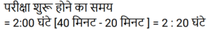 16. एक विशेष दिन एक प्रतियोगी परीक्षा आयोजित हो जानी है। जिस परीक्षा की परीक्षा को निगरानी करनी होती है, वह 2:30 घंटे से 30 मिनट पहले परीक्षा कक्ष में प्रवेश करता है। वह उसके छात्र से 40 मिनट पहले आओ यदि परीक्षा को लेकर 20 मिनट लेट जाए तो परीक्षा कितने बज शुरू होगी? [RRB NTPC 01/03/2021 (Morning)]