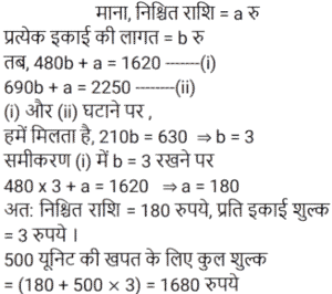 19. एक फार्म के बिजली बिल का एक भाग नियत रहता है और दूसरा भाग खपत को गई बिजली की युनिटों की संख्या के आधार पर परिवर्तित होता है। किसी माह में 480 यूनिट बिजली की खपत होने पर बिल ₹1620 था। दूसरे माह में 690 यूनिट बिजली की खपत होने पर बिल ₹2250 था। यदि अगले माह में 500 यूनिट बिजली की खपत हुई, तो उस माह का बिल कितना होगा? [RRB NTPC 11/03/2021 (Evening)]