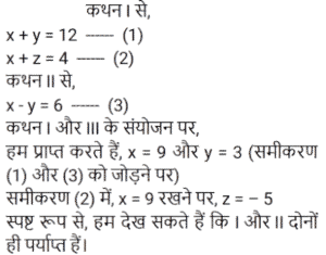विविधTotal Questions: 3431. किसी थैलें में लाल और नीले रंग के गेंदों की संख्या का अनुपात स्थिर है। जब उसमें 44 लाल गेंद थे, तो नीले गेंदों की संख्या 36 थी। यदि नीले गेंदों की संख्या 54 हो तो थैले में लाल गेंदों की संख्या कितनी होगी? [RRB ALP 09/08/2018 (Morning)](a) 62(b) 68(c) 66(d) 64Correct Answer: (c) 66Solution:32. दिये गये प्रश्न का उत्तर देने के लिए निम्न में से कौन से कथन आवश्यक होंगे? [RRB ALP 20/08/2018 (Evening)]दिये गये कथनों से x, y, z का मान ज्ञात कीजिए?कथन:I: x + y = 12; x + z = 4II: x - y = 6(a) केवल | प्रमाणित है जबकि || अकेला प्रमाणित नहीं है।(b) और || दोनों प्रमाणित हैं।(c) केवल | प्रमाणित है जबकि || अकेला प्रमाणित नहीं है।(d) न तो | और न ही || प्रमाणित है।Correct Answer: (b) और || दोनों प्रमाणित हैं।Solution:33. किसी सामान्य सेट के सदस्य में, A U (B∩C) = [RRB ALP 29/08/2018 (Afternoon)](a) (A∪B) ∩ (A∩C) =(b) (A∩B) U (A∩C) =(c) (A∪B) U (A∩C) =(d) (A∪B) ∩ (A∪C) =Correct Answer: (d) (A∪B) ∩ (A∪C) =Solution:34. जब प्लाईवुड के 0.23 सेंटीमीटर मोटाई वाले 472 टुकड़े, एक दूसरे के ऊपर रखे जाते हैं, तो इस प्रकार बने संयोग की मीटर में ऊँचाई कितनी होगी? [RRB ALP 29/08/2018 (Evening)](a) 1.856(b) 10.856(c) 108.56(d) 1.0856Correct Answer: (d) 1.0856Solution:Submit Quiz« Previous1234