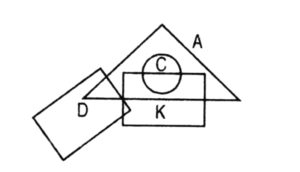 त्रिभुज A अरबी बोलने वाले लोगों को दर्शाता है, वृत्त C चीनी बोलने वाले लोगों को दर्शाता है, चतुर्भुज K कोरियाई बोलने वाले लोगों को दर्शाता है और आयत D डच बोलने वाले लोगों को दर्शाता है।