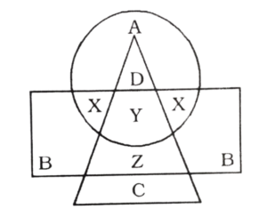 वेन आरेख में, वर्ग, प्रशिक्षित शिक्षकों के संबंध में बताता है। वृत्त, शादीशुदा लोगों के संबंध में बताता है। त्रिभुज, कॉलेज में प्राध्यापक के संबंध में बताता है।