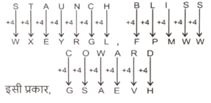 11. अंग्रेजी वर्णमाला क्रम के आधार पर 'STAUNCH', 'WXEYRGL' से एक निश्चित प्रकार से संबंधित है। उसी प्रकार, 'BLISS', 'FPMWW' से संबंधित है। समान तर्क का अनुसरण करते हुए, 'COWARD' निम्नलिखित में से किससे संबंधित है ? [SSC CHSL 08/07/2024 (4th Shift)]