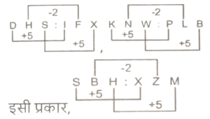 समानता (प्रश्न 451-500) भाग-XTotal Questions: 5041. उस विकल्प को चुनिए जिसमें अक्षर समूह वही संबंध साझा करता है जो नीचे दिए गए अक्षर - समूहों के युग्म द्वारा साझा किया जाता है। [SSC CHSL 07/08/2023 (3rd Shift)]DHS : IFXKNW : PLB(a) GUZ : LSF(b) NYB : IAG(c) XMA : DKG(d) SBH : XZMCorrect Answer: (d) SBH : XZMSolution:42. अक्षर-समूहों के उस युग्म को चुनिए, जो उसी पैटर्न का अनुसरण करता है जो नीचे दिए गए अक्षर समूहों के युग्म के दो समुच्चयों द्वारा किया जाता है। अक्षर समूहों के दोनों युग्म समान पैटर्न का अनुसरण करते हैं। [SSC CHSL 07/08/2023 (4th Shift)]EKM : DIJLPT : KNQ(a) ABC : XYZ(b) PWZ : OUW(c) PJQ : NHO(d) JMR : LOTCorrect Answer: (b) PWZ : OUWSolution:43. उस विकल्प को चुनिए जो तीसरे पद से ठीक उसी प्रकार संबंधित है जिस प्रकार दूसरा पद पहले पद से संबंधित है और छठा पद पांचवें पद से संबंधित है। [SSC CHSL 07/08/2023 (4th Shift)]11 : 133 :: 16 : ? :: 22 : 507(a) 280(b) 270(c) 273(d) 290Correct Answer: (c) 273Solution:तर्क : (पहली संख्या)² + ( पहली संख्या + 1) = दूसरी संख्या11 : 133 → 11² + (11 + 1) ⇒ 121 + 12 = 13322 : 507 → 22² + (22 + 1) ⇒ 484 + 23 = 507इसी प्रकार,16 : ? → 16² + (16 + 1) ⇒ 256 + 17 = 27344. उस समुच्चय को चुनिए जिसमें संख्याएँ ठीक उसी प्रकार संबंधित हैं जिस प्रकार निम्नलिखित समुच्चयों की संख्याएँ संबंधित हैं। [SSC CHSL 08/08/2023 (1st Shift)]12-15-200 और 10-12-140(a) 9-5-40(b) 6-9-74(c) 2-4-10(d) 7-8-56Correct Answer: (b) 6-9-74Solution:तर्कः (पहली संख्या × दूसरी संख्या) + 20 = तीसरी संख्या(12 × 15) + 20 = 200(10 × 12) + 20 = 140इसी प्रकार,(6 × 9) + 20 = 7445. निम्नलिखित संख्या-युग्मों में पहली संख्या पर कुछ गणितीय संक्रियाएँ लागू करके दूसरी संख्या प्राप्त की जाती है। उस समुच्चय को चुनिए जिसमें संख्याएँ उसी प्रकार संबंधित हैं जिस प्रकार निम्नलिखित समुच्चयों की संख्याएँ संबंधित हैं। [SSC CHSL 08/08/2023 (2nd Shift)](42,370)(57,505)(a) (29,253)(b) (31,288)(c) (49, 449)(d) (84, 747)Correct Answer: (a) (29,253)Solution:तर्कः (पहली संख्या × 9) - 8 = दूसरी संख्या(42, 370) → (42 × 9) - 8 ⇒ 378 - 8 = 370(57, 505) → (57 × 9) - 8 ⇒ 513 - 8 = 505इसी प्रकार,(29, 253) → (29 × 9) - 8 ⇒ 261 - 8 = 25346. नीचे दिए गए विकल्पों में से उस त्रय को चुनिए जिसमें वही समानता है जो समानता निम्नलिखित त्रयों में है। [SSC CHSL 08/08/2023 (3rd Shift)]6 : 36 : 21617 : 289 : 4913(a) 22:440:9000(b) 21:400:9200(c) 21 : 441 : 9261(d) 22:400:9999Correct Answer: (c) 21 : 441 : 9261Solution:तर्क :- (पहली संख्या × दूसरी संख्या) = तीसरी संख्या6 : 36 : 216) :- (6 × 36) = 21617 : 289 : 4913 :- (17 × 289) = 4913इसी प्रकार,21 : 441 : 9261 :- (21 × 441) = 926147. एक निश्चित तर्क के अनुसार 34, 70 से संबंधित है। समान तर्क के अनुसार, 56, 114 से संबंधित है। समान तर्क का अनुसरण करते हुए 23 निम्नलिखित में से किससे संबंधित है? [SSC CHSL 09/08/2023 (1st Shift)](a) 39(b) 52(c) 48(d) 47Correct Answer: (c) 48Solution:तर्कः (पहली संख्या × 2) + 2 = दूसरी संख्या(34 - 70) (34 × 2) + 2 ⇒ 68 + 2 = 70(56 - 114) (56 × 2) + 2 ⇒ 112 + 2 = 114इसी प्रकार,(23 - ?) (23 × 2) + 2 ⇒ 46 + 2 = 4848. उस विकल्प को चुनिए जिसमें अक्षर-समूह वही संबंध साझा करता है जो नीचे दिए गए अक्षर-समूहों के युग्म द्वारा साझा किया जाता है। [SSC CHSL 09/08/2023 (1st Shift)]DKG : HSNVLM : ZTT(a) RBI : VYG(b) SPY: VXB(c) KTY : OBF(d) PBN : SLMCorrect Answer: (c) KTY : OBFSolution:49. उस विकल्प को चुनिए जो पहले पद से ठीक उसी प्रकार संबंधित है जिस प्रकार चौथा पद तीसरे पद से संबंधित है और छठा पद पांचवें पद से संबंधित है। [SSC CHSL 09/08/2023, (3rd Shift)]7 : ? :: 15 : 150 :: 18 : 234(a) 17(b) 12(c) 14(d) 15Correct