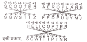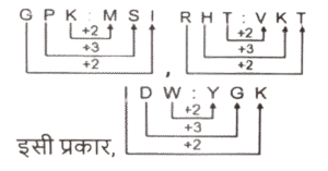समानता (प्रश्न 601-650) भाग-XIIITotal Questions: 5021. उस विकल्प का चयन करें जो पांचवें अक्षर समूह से उसी प्रकार संबंधित है जिस प्रकार दूसरा अक्षर- समूह पहले अक्षर समूह से और चौथा अक्षर समूह तीसरे अक्षर समूह से संबंधित है। [SSC CGL 26/07/2023 (2nd shift)]SCOOTER : SGWSTIZ :: AEROPLANE :FPDPUUYMJ :: HELICOPTER : ?(a) RETPOCILEH(b) SGWTTIPTNR(c) SFUQPDJMFI(d) SGWTTIPLEHCorrect Answer: (b) SGWTTIPTNRSolution:22. उस शब्द-युग्म का चयन करें जो नीचे दिए गए शब्दों के युग्म में व्यक्त किए गए समान संबंध का सबसे अच्छा निरूपण करता है। [SSC CGL 26/07/2023 (3rd shift)]ऊर्जा : जूल(a) तापमान : गरम(b) बल : वाट(c) शक्ति : अश्व(d) धारा : एम्पियरCorrect Answer: (d) धारा : एम्पियरSolution:जिस प्रकार जूल, ऊर्जा की इकाई है उसी प्रकार एम्पीयर, धारा की इकाई है।23. उस विकल्प का चयन करें जो पाँचवें अक्षर-समूह से उसी प्रकार संबंधित है जिस प्रकार दूसरा अक्षर- समूह पहले अक्षर - समूह से संबंधित है और चौथा अक्षर-समूह तीसरे अक्षर समूह से संबंधित है। [SSC CGL 26/07/2023 (3rd shift)]BET : UXM :: SYP : LRI :: HOX : ?(a) NVE(b) AHQ(c) BHQ(d) MVECorrect Answer: (b) AHQSolution:24. उस विकल्प का चयन करें जो चौथे पद से उसी प्रकार संबंधित है जिस प्रकार पहला पद दूसरे पद से संबंधित है और पांचवां पद, छठे पद से संबंधित है। [SSC CGL 26/07/2023 (3rd shift)]17 : 4624 :: ? : 180 :: 13 : 2028(a) 4(b) 7(c) 6(d) 11Correct Answer: (c) 6Solution:तर्कः (पहली संख्या) - (पहली संख्या)² = दूसरी संख्या17 : 4624 → 17³ - 17²⇒ 4913 - 289 = 462413/2028 → 13³ - 13²⇒ 2197 - 169 = 2028इसी प्रकार,? : 180 6³ - 6² ⇒ 216 - 36 = 18025. उचित' का संबंध 'न्याय संगत' से उसी प्रकार है जिस प्रकार 'धूर्तता का संबंध______ से है। [SSC CGL 26/07/2023 (4th shift)](a) व्यक्ति(b) व्यक्तित्व(c) कपट(d) चरित्रCorrect Answer: (c) कपटSolution:जिस प्रकार उचित, न्याय संगत का पर्याय है, उसी प्रकार धूर्तता, कपट का पर्याय है26. विकल्पों में से उस समुच्चय का चयन कीजिए जिसमें संख्याएँ उसी प्रकार संबंधित हैं जिस प्रकार निम्नलिखित समुच्चयों की संख्याएँ संबंधित हैं। [SSC CGL 26/07/2023 (4th shift)](15, 23, 31)(33, 41, 49)(a) (21, 29, 43)(b) (20, 28, 36)(c) (20, 33, 28)(d) (35, 43, 56)Correct Answer: (b) (20, 28, 36)Solution:तर्क :- (दूसरी संख्या - पहली संख्या) = 8,(तीसरी संख्या - दूसरी संख्या) = 8(15, 23, 31) :- (23 - 15) = 8, (31 - 23) = 8(33, 41, 49) :- (41 - 33) = 8, (49 - 41) = 8इसी प्रकार,(20, 28, 36) :- (28 - 20) = 8, (36 - 28) = 827. उस विकल्प का चयन कीजिए जो पांचवें अक्षर समूह से उसी प्रकार संबंधित है जिस प्रकार दूसरा अक्षर- समूह पहले अक्षर समूह से संबंधित है और चौथा अक्षर-समूह तीसरे अक्षर समूह से संबंधित है। [SSC CGL 27/07/2023 (1st shift)]GPK : MSI :: RHT : VKT :: IDW : ?(a) YGK(b) ZHL(c) KGY(d) YIKCorrect Answer: (a) YGKSolution:28. विकल्पों में से उस समुच्चय का चयन कीजिए जिसमें संख्याएँ उसी प्रकार संबंधित हैं जिस प्रकार निम्नलिखित समुच्चयों की संख्याएँ संबंधित हैं। [SSC CGL 27/07/2023 (1st shift)](39, 65), (63, 105)(a) (66, 165)(b) (96, 160)(c) (72, 180)(d) (84, 155)Correct Answer: (d) (84, 155)Solution:तर्क :- (पहली संख्या + दूसरी संख्या) = 3 / 5(39,65) :- (39 ÷ 65) = 3/5(63, 105) :- (63 ÷ 105) = 3/5इसी प्रकार, (96, 160) :- (96 ÷ 160)= 3/529. उस विकल्प का चयन करें जो तीसरे शब्द से उसी प्रकार संबंधित है जिस प्रकार दूसरा शब्द पहले शब्द से संबंधित है। [SSC CGL 27/07/2023 (1st shift)]रिंगवॉर्म (Ringworm) : त्वचा :: फीता कृमि (Tapeworm) : ?(a) आंत(b) रक्त(c) फेफड़