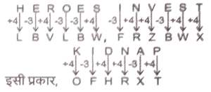 स्वर अपने स्थानिक मान के संबंध में –3 से बदलते हैं और व्यंजन +4 से बदलते हैं।