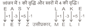 समानता (प्रश्न 951-1000) भाग-XXTotal Questions: 5031. निम्नलिखित विकल्पों में से किसमें वही सम्बन्ध है जो दिए गए अंक समूह में है। [SSC CHSL 12/10/2020 (Morning)](3, 68, 5)(a) (5, 95, 8)(b) (2,72, 10)(c) (4, 65, 5)(d) (2, 10, 1)Correct Answer: (d) (2, 10, 1)Solution:(5 + 3)² + (5 - 3)² = (8)² + (2)² = 64 + 4 = 68 उसी प्रकार, (2 + 1)²+ (2 - 1)² = (3)² + (1)² = 9 + 1 = 1032. निम्नलिखित में से कौन सा विकल्प तीसरे शब्द से उसी प्रकार संबंधित है जैसे दूसरा शब्द पहले से। [SSC CHSL 12/10/2020 (Afternoon)]EASY : IETZ :: LAKE :_____(a) PBKL(b) MELI(c) PELI(d) MBLICorrect Answer: (b) MELISolution:33. किस विकल्प में शब्दों में वही संबंध है जो दिए गए शब्दों के जोड़े में है ? [SSC CHSL 12/10/2020 (Evening)]सहारा : अफ्रीका(a) थार : ऑस्ट्रेलिया(b) सेंडी : अमेरिका(c) गोबी : एशिया(d) गिब्सन : यूरोपCorrect Answer: (c) गोबी : एशियाSolution:सहारा अफ्रीका का एक मरुस्थल है। इसी प्रकार गोबी एशिया का एक मरुस्थल है।34. निम्नलिखित में से किस विकल्प में अंक दिए गए अंक समूह की तरह ही आपस में सम्बंधित है ? [SSC CHSL 13/10/2020 (Afternoon)](13, 17, 442)(a) (18, 15, 540)(b) (17, 21,367)(c) (15, 14, 415)(d) (11,19, 628)Correct Answer: (a) (18, 15, 540)Solution:दिया गया सेट:- (13, 17, 442) ⇒ (13, 17, 13 × 17 × 2) इसी प्रकार विकल्प (a) में :- (18, 15, 18 × 15 × 2) ⇒ 18, 15, 54035. निम्लिखित में से किस विकल्प में शब्दों में वही सम्बन्ध है जो दिए गए शब्द समूह में है ? [SSC CHSL 13/10/2020 (Evening)]टाइगर - फ़ेलिडे(a) खरगोश : बोविडे(b) शेर : लेपोरिडे(c) हाथी : कनिडी(d) व्हेल : सीतासियाCorrect Answer: (d) व्हेल : सीतासियाSolution:फेलिडे उन बिल्लियों को संदर्भित करता है जो बाघों के समान दिखती हैं। इसी तरह, सीतासिया एक प्रकार का स्तनपायी है जो सबसे लंबे समय तक जीवित रहता है जैसे कि ब्लू व्हेल ।36. निम्लिखित में से किस विकल्प में अंक दिए गए अंक जोड़े की तरह ही आपस में सम्बंधित है ? [SSC CHSL 14/10/2020 (Morning)]44 : 408(a) 61 : 549(b) 53 : 489(c) 77:715(d) 82 : 740Correct Answer: (b) 53 : 489Solution:44 × 9 + 12 = 396 + 12 = 408 उसी प्रकार, 53 × 9 + 12 = 477 + 12 = 48937. निम्लिखित में से कौन सा विकल्प श्रृंखला के तीसरे शब्द से उसी प्रकार सम्बंधित है जैसे दूसरा पहले से ? [SSC CHSL 14/10/2020 (Morning)]TALP : UXQO :: DUXR : ?(a) FSDR(b) ERCQ(c) ESBQ(d) FQBPCorrect Answer: (b) ERCQSolution:38. निम्लिखित में से कौन सा विकल्प चौथे पद से उसी प्रकार संबंधित है जैसे पहला दूसरे से ? [SSC CHSL 14/10/2020 (Afternoon)]बाघ : बिल्ली :: ? : कुत्ता(a) जगुआर(b) बनबिलाव(c) लोमड़ी(d) शेरCorrect Answer: (c) लोमड़ीSolution:बाघ और बिल्ली दोनों बिल्ली के समान परिवार से संबंधित हैं। इसी तरह, कुत्ता और लोमड़ी कैनाइन परिवार से हैं।39. उस विकल्प का चयन करें जिसमें संख्याएं उसी तरह संबंधित हैं जिस तरह संख्याओं की युग्म संबंधित है। [SSC CHSL 15/10/2020 (Evening)](4, 67, 20)(a) (3, 30, 12)(b) (5, 28, 56)(c) (6, 219, 44)(d) (7, 52, 104)Correct Answer: (a) (3, 30, 12)Solution:दिए गए सेट के लिए: (4,67,20) ⇒ (4)³ + 3 = 67 4 × (4 + 1) = 20 उसी प्रकार, (3,30,12) ⇒ (3)³ + 3 = 30 ⇒ 3 × (3 + 1) = 12 हालाँकि, यह शर्त किसी अन्य विकल्प में पूरी नहीं होती है।40. निम्नलिखित में से कौन से शब्द समूह में वही सम्बन्ध है जो दिए गए शब्द समूह में है ? कठोरः लचीला [SSC CHSL 19/10/2020 (Morning)]कठोर : लचीला(a) चिंतित : उदास(b) उत्तरदायी : भावुक(c) साहसी : उद्यमशील(d) सत्तावादी : उदारCorrect Answer: (d) सत्तावादी : उदारSolution:किसी दिए गए शब्द युग्म के शब्द एक दूसरे 