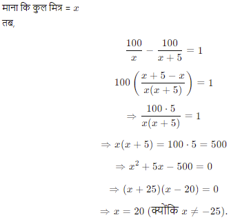 हरियाणा पुलिस (महिला) (18.03.2016)Total Questions: 10081. 287 × 287 + 269 × 269 – 2 × 287 × 269 = ?(1) 534(2) 446(3) 354(4) 324Correct Answer: (4) 324Solution:82. दो संख्याओं का गुणनफल y/x है। यदि इनमें से एक संख्या x/y² हो, तो दूसरी संख्या क्या होगी?(1) y³/x²(2) y²/x³(3) x²/y(4) x²/y²Correct Answer: (1) y³/x²Solution:83. 6 से विभक्त होने वाली तीन अंकों की कुल कितनी संख्याएँ हैं?(1) 149(2) 150(3) 151(4) 166Correct Answer: (2) 150Solution:84. 1.75, 5.6 तथा 7 का महत्तम समापवर्तक क्या होगा?(1) 0.7(2) 0.07(3) 3.5(4) 0.35Correct Answer: (4) 0.35Solution:85. एक व्यक्ति ने 100 रुपए अपने मित्रों में बराबर-बराबर बांटे। यदि उसके 5 मित्र अधिक होते, तो प्रत्येक को 1 रुपए कम मिलता। उसके कितने मित्र थे?(1) 20(2) 25(3) 30(4) 35Correct Answer: (1) 20Solution:86. एक नाव एक निश्चित बिन्दु तक 15 किमी. प्रति घंटा की चाल से जाती है तथा 10 किमी प्रति घंटा की चाल से वापस प्रारम्भिक बिन्दु पर लौट आती है। पूरी यात्रा में नाव की औसत चाल (किमी/घंटा में) कितनी है।(1) 12.5(2) 12(3) 11.25(4) इनमें से कोई नहींCorrect Answer: (2) 12Solution:87. कमला का विवाह 6 वर्ष पूर्व हुआ। उसकी वर्तमान आयु उसके विवाह के समय की आयु से 5/4 गुनी है। कमला के पुत्र की आयु उसकी आयु का 1/10 है। उसके पुत्र की वर्तमान आयु क्या है?(1) 2 वर्ष(2) 3 वर्ष(3) 4 वर्ष(4) 5 वर्षCorrect Answer: (2) 3 वर्षSolution:88. Choose the word which is most nearly the same in meaning to the key word.PLEASURE(1) disappointment(2) happiness(3) grief(4) anxietyCorrect Answer: (2) happinessSolution:Pleasure → खुशी, मजा, हर्ष, प्रसन्नता Similar words → Joy, delight, pleasance, happiness, relish, satisfaction, glee.89. Choose the word opposite in meaning to the key word.MODESTY(1) hypocrisy(2) vanity(3) arrogance(4) superiorityCorrect Answer: (3) arroganceSolution:Pleasure Antonyms → gloom, melancholy, pain, sadness, sorrow, trouble, unhappiness, worry.90. निम्नलिखित में से अवरोही क्रम में कौन सी संख्याएँ हैं?(1) 3/5, 7/9, 6/7(2) 7/9, 3/5, 6/7(3) 7/9, 6/7, 3/5(4) 6/7, 7/9, 3/5Correct Answer: (4) 6/7, 7/9, 3/5Solution:3/5, 7/9, 6/75, 9 तथा 7 का ल.स. = 315= 3/5 × 315, 7/9 × 315 , 6/7 × 315= 189 , 245, 270अवरोही क्रम: 270, 245, 1896/7 7/9 3/5Submit Quiz« Previous12345678910Next »