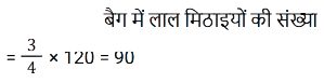 6. एक बैग में लाल और हरी मिठाइयों का अनुपात 3 : 4 है। यदि हरी मिठाइयों की संख्या 120 है, तो बैग में कितनी लाल मिठाइयाँ हैं ? [SSC CHSL 11/07/2024 (1st Shift)]