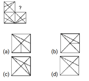 आकृति संकलन (भाग-I)Total Questions: 5031. उस विकल्प आकृति का चयन करें जो पैटर्न को पूरा करने के लिए नीचे दी गई प्रश्न आकृति में प्रश्न चिह्न (?)/रिक्त स्थान को प्रतिस्थापित करेगी। [SSC CGL 13/09/2024 (3rd Shift)](a)(b)(c)(d)Correct Answer: (a)Solution:32. उस विकल्प आकृति का चयन करें जो पैटर्न को पूरा करने के लिए नीचे दी गई प्रश्न आकृति में प्रश्न चिह्न (?)/रिक्त स्थान को प्रतिस्थापित करेगी। [SSC CGL Tier II 26/10/2023](a)(b)(c)(d)Correct Answer: (b)Solution:33. उस विकल्प आकृति का चयन करें जो पैटर्न को पूरा करने के लिए नीचे दी गई प्रश्न आकृति में प्रश्न चिह्न (?)/रिक्त स्थान को प्रतिस्थापित करेगी। [SSC MTS 01/09/2023 (2nd Shift)](a)(b)(c)(d)Correct Answer: (c)Solution:34. उस विकल्प आकृति का चयन करें जो पैटर्न को पूरा करने के लिए नीचे दी गई प्रश्न आकृति में प्रश्न चिह्न (?)/रिक्त स्थान को प्रतिस्थापित करेगी। [SSC MTS 05/09/2023 (2nd Shift)](a)(b)(c)(d)Correct Answer: (b)Solution:35. उस विकल्प आकृति का चयन करें जो पैटर्न को पूरा करने के लिए नीचे दी गई प्रश्न आकृति में प्रश्न चिह्न (?)/रिक्त स्थान को प्रतिस्थापित करेगी। [SSC MTS 06/09/2023 (1st Shift)](a)(b)(c)(d)Correct Answer: (d)Solution:36. उस विकल्प आकृति का चयन करें जो पैटर्न को पूरा करने के लिए नीचे दी गई प्रश्न आकृति में प्रश्न चिह्न (?)/रिक्त स्थान को प्रतिस्थापित करेगी। [SSC MTS 08/09/2023 (1st Shift)](a)(b)(c)(d)Correct Answer: (a)Solution:37. उस विकल्प आकृति का चयन करें जो पैटर्न को पूरा करने के लिए नीचे दी गई प्रश्न आकृति में प्रश्न चिह्न (?)/रिक्त स्थान को प्रतिस्थापित करेगी। [SSC MTS 08/09/2023 (3rd Shift)](a)(b)(c)(d)Correct Answer: (b)Solution:38. उस विकल्प आकृति का चयन करें जो पैटर्न को पूरा करने के लिए नीचे दी गई प्रश्न आकृति में प्रश्न चिह्न (?)/रिक्त स्थान को प्रतिस्थापित करेगी। [SSC MTS 13/09/2023 (1st Shift)](a)(b)(c)(d)Correct Answer: (c)Solution:39. उस विकल्प आकृति का चयन करें जो पैटर्न को पूरा करने के लिए नीचे दी गई प्रश्न आकृति में प्रश्न चिह्न (?)/रिक्त स्थान को प्रतिस्थापित करेगी। [SSC MTS 13/09/2023 (3rd Shift)](a)(b)(c)(d)Correct Answer: (c)Solution:40. उस विकल्प आकृति का चयन करें जो पैटर्न को पूरा करने के लिए नीचे दी गई प्रश्न आकृति में प्रश्न चिह्न (?)/रिक्त स्थान को प्रतिस्थापित करेगी। [SSC CHSL Tier II 26/06/2023](a)(b)(c)(d)Correct Answer: (d)Solution:Submit Quiz« Previous12345Next »