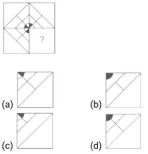 आकृति संकलन (भाग-II)Total Questions: 4321. उस विकल्प आकृति का चयन करें जो पैटर्न को पूरा करने के लिए नीचे दी गई प्रश्न आकृति में प्रश्न चिह्न (?)/रिक्त स्थान को प्रतिस्थापित करेगी। [SSC MTS 16/06/2023 (Morning)](a)(b)(c)(d)Correct Answer: (d)Solution:22. उस विकल्प आकृति का चयन करें जो पैटर्न को पूरा करने के लिए नीचे दी गई प्रश्न आकृति में प्रश्न चिह्न (?)/रिक्त स्थान को प्रतिस्थापित करेगी। [SSC MTS 16/06/2023 (Afternoon)](a)(b)(c)(d)Correct Answer: (c)Solution:23. उस विकल्प आकृति का चयन करें जो पैटर्न को पूरा करने के लिए नीचे दी गई प्रश्न आकृति में प्रश्न चिह्न (?)/रिक्त स्थान को प्रतिस्थापित करेगी। [SSC MTS 19/06/2023 (Morning)](a)(b)(c)(d)Correct Answer: (a)Solution:24. उस विकल्प आकृति का चयन करें जो पैटर्न को पूरा करने के लिए नीचे दी गई प्रश्न आकृति में प्रश्न चिह्न (?)/रिक्त स्थान को प्रतिस्थापित करेगी। [SSC MTS 19/06/2023 (Afternoon)](a)(b)(c)(d)Correct Answer: (a)Solution:25. उस विकल्प आकृति का चयन करें जो पैटर्न को पूरा करने के लिए नीचे दी गई प्रश्न आकृति में प्रश्न चिह्न (?)/रिक्त स्थान को प्रतिस्थापित करेगी। [SSC MTS 19/06/2023 (Evening)](a)(b)(c)(d)Correct Answer: (d)Solution:26. उस विकल्प आकृति का चयन करें जो पैटर्न को पूरा करने के लिए नीचे दी गई प्रश्न आकृति में प्रश्न चिह्न (?)/रिक्त स्थान को प्रतिस्थापित करेगी। [SSC MTS 20/06/2023 (Morning)](a)(b)(c)(d)Correct Answer: (c)Solution:27. उस विकल्प आकृति का चयन करें जो पैटर्न को पूरा करने के लिए नीचे दी गई प्रश्न आकृति में प्रश्न चिह्न (?)/रिक्त स्थान को प्रतिस्थापित करेगी। [SSC MTS 20/06/2023 (Afternoon)](a)(b)(c)(d)Correct Answer: (c)Solution:28. उस विकल्प आकृति का चयन करें जो पैटर्न को पूरा करने के लिए नीचे दी गई प्रश्न आकृति में प्रश्न चिह्न (?)/रिक्त स्थान को प्रतिस्थापित करेगी। [SSC MTS 20/06/2023 (Evening)](a)(b)(c)(d)Correct Answer: (d)Solution:29. उस विकल्प आकृति का चयन करें जो पैटर्न को पूरा करने के लिए नीचे दी गई प्रश्न आकृति में प्रश्न चिह्न (?)/रिक्त स्थान को प्रतिस्थापित करेगी। [SSC CGL Tier II 02/03/2023](a)(b)(c)(d)Correct Answer: (a)Solution:30. उस विकल्प आकृति का चयन करें जो पैटर्न को पूरा करने के लिए नीचे दी गई प्रश्न आकृति में प्रश्न चिह्न (?)/रिक्त स्थान को प्रतिस्थापित करेगी। [SSC CGL Tier II 03/03/2023](a)(b)(c)(d)Correct Answer: (c)Solution:Submit Quiz« Previous12345Next »