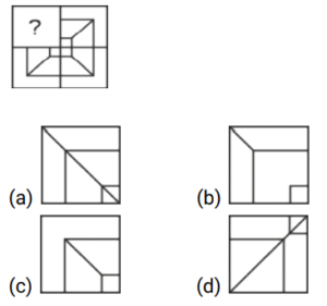 आकृति संकलन (भाग-II)Total Questions: 4331. उस विकल्प आकृति का चयन करें जो पैटर्न को पूरा करने के लिए नीचे दी गई प्रश्न आकृति में प्रश्न चिह्न (?)/रिक्त स्थान को प्रतिस्थापित करेगी। [SSC CGL Tier II 06/03/2023](a)(b)(c)(d)Correct Answer: (b)Solution:32. उस विकल्प आकृति का चयन करें जो पैटर्न को पूरा करने के लिए नीचे दी गई प्रश्न आकृति में प्रश्न चिह्न (?)/रिक्त स्थान को प्रतिस्थापित करेगी। [SSC CGL Tier II 07/03/2023](a)(b)(c)(d)Correct Answer: (b)Solution:33. उस विकल्प आकृति का चयन करें जो पैटर्न को पूरा करने के लिए नीचे दी गई प्रश्न आकृति में प्रश्न चिह्न (?)/रिक्त स्थान को प्रतिस्थापित करेगी। [SSC MTS 06/07/2022 (Evening)](a)(b)(c)(d)Correct Answer: (c)Solution:34. उस विकल्प आकृति का चयन करें जो पैटर्न को पूरा करने के लिए नीचे दी गई प्रश्न आकृति में प्रश्न चिह्न (?)/रिक्त स्थान को प्रतिस्थापित करेगी। [SSC MTS 06/07/2022 (Evening)](a)(b)(c)(d)Correct Answer: (c)Solution:35. उस विकल्प आकृति का चयन करें जो पैटर्न को पूरा करने के लिए नीचे दी गई प्रश्न आकृति में प्रश्न चिह्न (?)/रिक्त स्थान को प्रतिस्थापित करेगी। [SSC MTS 07/07/2022 (Morning)](a)(b)(c)(d)Correct Answer: (c)Solution:36. उस विकल्प आकृति का चयन करें जो पैटर्न को पूरा करने के लिए नीचे दी गई प्रश्न आकृति में प्रश्न चिह्न (?)/रिक्त स्थान को प्रतिस्थापित करेगी। [SSC MTS 11/07/2022 (Morning)](a)(b)(c)(d)Correct Answer: (a)Solution:37. उस विकल्प आकृति का चयन करें जो पैटर्न को पूरा करने के लिए नीचे दी गई प्रश्न आकृति में प्रश्न चिह्न (?)/रिक्त स्थान को प्रतिस्थापित करेगी। [SSC MTS 12/07/2022 (Morning)](a)(b)(c)(d)Correct Answer: (a)Solution:38. उस विकल्प आकृति का चयन करें जो पैटर्न को पूरा करने के लिए नीचे दी गई प्रश्न आकृति में प्रश्न चिह्न (?)/रिक्त स्थान को प्रतिस्थापित करेगी। [SSC MTS 06/10/2021 ( Morning )](a)(b)(c)(d)Correct Answer: (c)Solution:39. उस विकल्प आकृति का चयन करें जो पैटर्न को पूरा करने के लिए नीचे दी गई प्रश्न आकृति में प्रश्न चिह्न (?)/रिक्त स्थान को प्रतिस्थापित करेगी। [SSC MTS 02/08/2019 (Morning)](a)(b)(c)(d)Correct Answer: (b)Solution:40. उस विकल्प आकृति का चयन करें जो पैटर्न को पूरा करने के लिए नीचे दी गई प्रश्न आकृति में प्रश्न चिह्न (?)/रिक्त स्थान को प्रतिस्थापित करेगी। [SSC MTS 02/08/2019 (Evening)](a)(b)(c)(d)Correct Answer: (b)Solution:Submit Quiz« Previous12345Next »