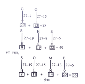 उसी प्रकार, 27, 64, 125, 216 का घनमूल जो कि 3, 4, 5, 6 का योग (3+4+5+6=(18)) अतः (?) के स्थान पर 18 होगा।