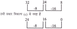 उत्तराखण्ड समीक्षा अधिकारी/सहायक समीक्षा अधिकारी (प्री) परीक्षा, 2021 सामान्य अध्ययन, सामान्य बुद्धि परीक्षण एवं सामान्य हिन्दी (Part-II)Total Questions: 7541. In the following, find the missing number : निम्नलिखित में, लुप्त संख्या ज्ञात कीजिए :68 : 130 : : ? : 350(a) 210(b) 222(c) 232(d) 260Correct Answer: (b) 222Solution:(68=64+4=(4)^{3}+4)(130=125+5=(5)^{3}+5) (?=216+6=(6)^{3}+6=222) (350=343+7=(7)^{3}+7) अतः अभीष्ट उत्तर विकल्प (b) होगा।42. If REASON is coded as 5 and BELIEVED as 7, then what is the code of GOVERNMENT? यदि REASON का कूट 5 और BELIEVED का 7 है, तब GOVERNMENT का कूट क्या है?(a) 7(b) 8(c) 9(d) 10Correct Answer: (c) 9Solution:(कूट : अक्षरों की संख्या - 1 = संख्या) जैसे REASON शब्द में 6 अक्षर हैं और इसका कूट 6-1 = 5 है। & BELIEVED शब्द में 8 अक्षर हैं और इसका कूट 8-1 = 7 है। उसी प्रकार GOVERNMENT शब्द में 10 अक्षर हैं और इसका कूट 10-1 = 9 होगा।43. A group of numbers is given, choose another similar group of numbers :/ दिए हुए संख्या समूह के समरूप दूसरा संख्या समूह चुनें :(32, 24, 8)(a) (36, 32, 42)(b) (34, 24, 14)(c) (24, 16, 0)(d) (42, 34, 16)Correct Answer: (c) (24, 16, 0)Solution:जिस प्रकारअतः अभीष्ट विकल्प (c) दिये गये संख्या समूह के समरूप दूसरा संख्या समूह होगा।44. Find the number which is different from others in the following group: / नीचे दिए गए समूह में उस संख्या को ज्ञात कीजिए जो अन्य संख्याओं से अलग है :8314, 2709, 1315, 2518(a) 8314(b) 2709(c) 1315(d) 2518Correct Answer: (a) 8314Solution:विकल्प (a) अन्य सभी से असंगत है। क्योंकि अन्य संख्याओं में प्रथम तीन अंकों का योग इकाई अंक के बराबर है।[2709=2+7+0=9][1315=1+3+1=5][2518=2+5+1=8][8314=8+3+1=12\ne4]45. A, P, R, X, S and Z are sitting in a row. S and Z are in the centre and A and P are at the ends. R is sitting just on the left of A. Then, who is sitting on the right of P? A, P, R, X, S और Z एक पंक्ति में बैठे हैं। S एवं Z मध्य में हैं और A एवं P छोर पर हैं। R बिल्कुल A के बायीं तरफ बैठा है। तब P के दायीं ओर कौन बैठा है?(a) A(b) S(c) Z(d) XCorrect Answer: (d) XSolution:उपर्युक्त चित्र से स्पष्ट है कि P के दायीं ओर X होगा। अतः अभीष्ट विकल्प (d) होगा।46. निम्नलिखित में से सही वर्तनी वाला शब्द कौन सा है?(a) ऊषा(b) संन्यासी(c) अनुग्रहीत(d) व्यवसायिकCorrect Answer: (b) संन्यासीSolution:संन्यासी' दिये गये शब्दों में शुद्ध वर्तनी वाला शब्द है। अन्य शब्दों का शुद्ध रूप होगा-अशुद्ध शब्दशुद्ध शब्दऊषाउषाअनुग्रहीतअनुगृहीतव्यवसायिकव्यावसायिक47. निम्नलिखित में से कौन सा विशेष्य-विशेषण का उदाहरण नहीं है?(a) संगृहीत(b) संयत(c) क्षम्य(d) कोचवानCorrect Answer: (d) कोचवानSolution:दिये गये शब्दों में 'कोचवान' विशेष्य-विशेषण का उदाहरण नहीं है, जबकि शेष शब्द विशेष्य-विशेषण के उदाहरण है। कोचवान संज्ञा शब्द है।48. निम्नलिखित में से कौन सा वाक्य गलत है?(a) आँखों से आँसू बहने लगा।(b) मैं प्रातः काल टहलता हूँ।(c) मैं आपके दर्शन करने आया हूँ।(d) उसके प्राण उड़ गये।Correct Answer: (a) आँखों से आँसू बहने लगा।Solution:'आँखों से आँसू बहने लगा' वाक्य गलत है। इसका शुद्ध रूप होगा 'आँखों से आँसू बहने लगे'। जबकि दिये गये शेष वाक्य शुद्ध हैं। 'आँसू' का प्रयोग सदैव बहुवचन में होता है।49. निम्नलिखित में से कौन सा वाक्य सही है?(a) दही बहुत खट्टी है।(b) मेरी कोट खूँटी पर टंगी है।(c) मैं अभिभावक पर श्रद्धा रखता हूँ।(d) मैं